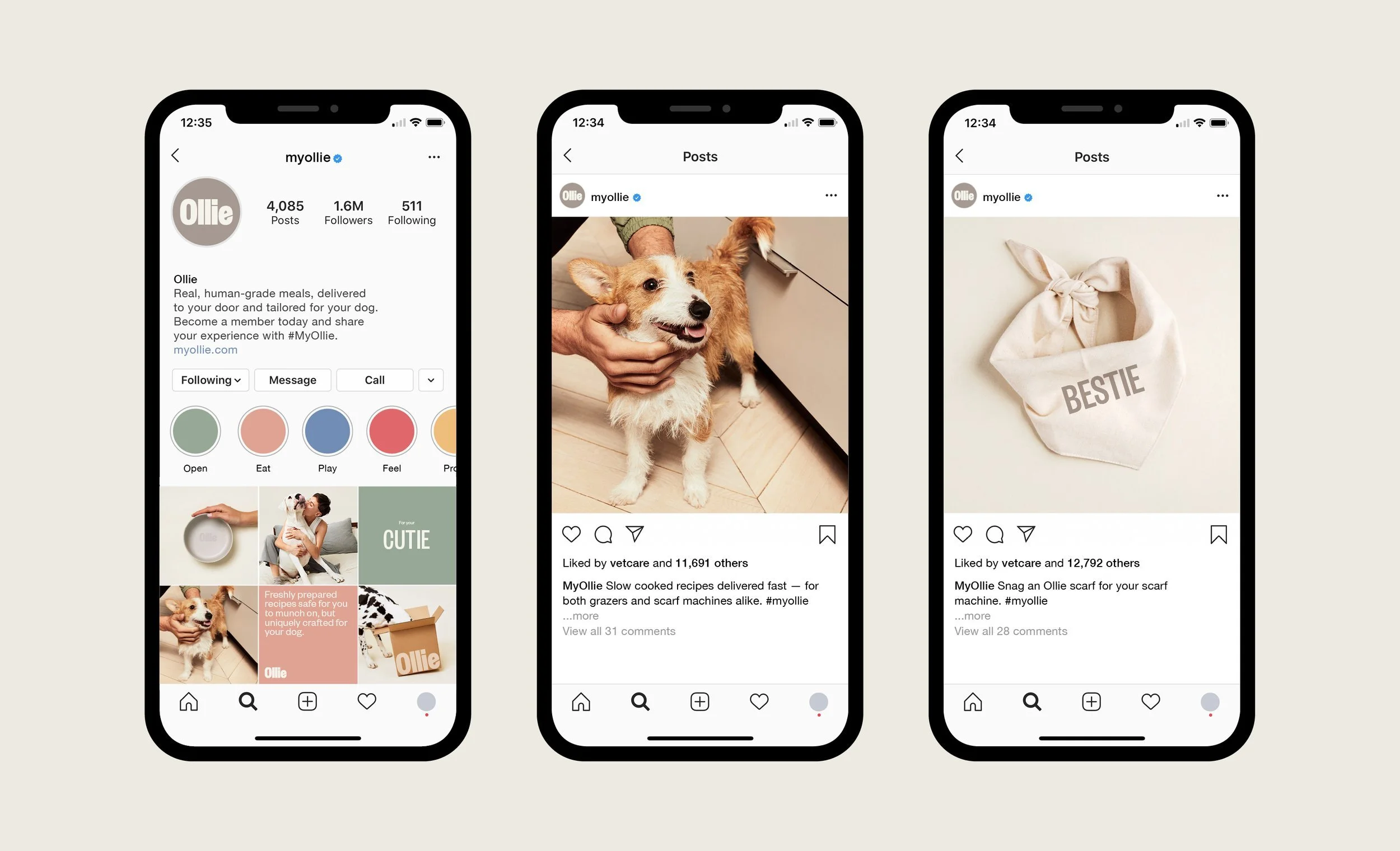 Partnered with a creative studio to lead a comprehensive rebrand for Ollie, with the in-house team serving as the client. Focused on celebrating each dog's unique tastes, lifestyle, and health needs, the studio developed an elevated yet approachable visual system that breaks away from traditional pet food branding.
